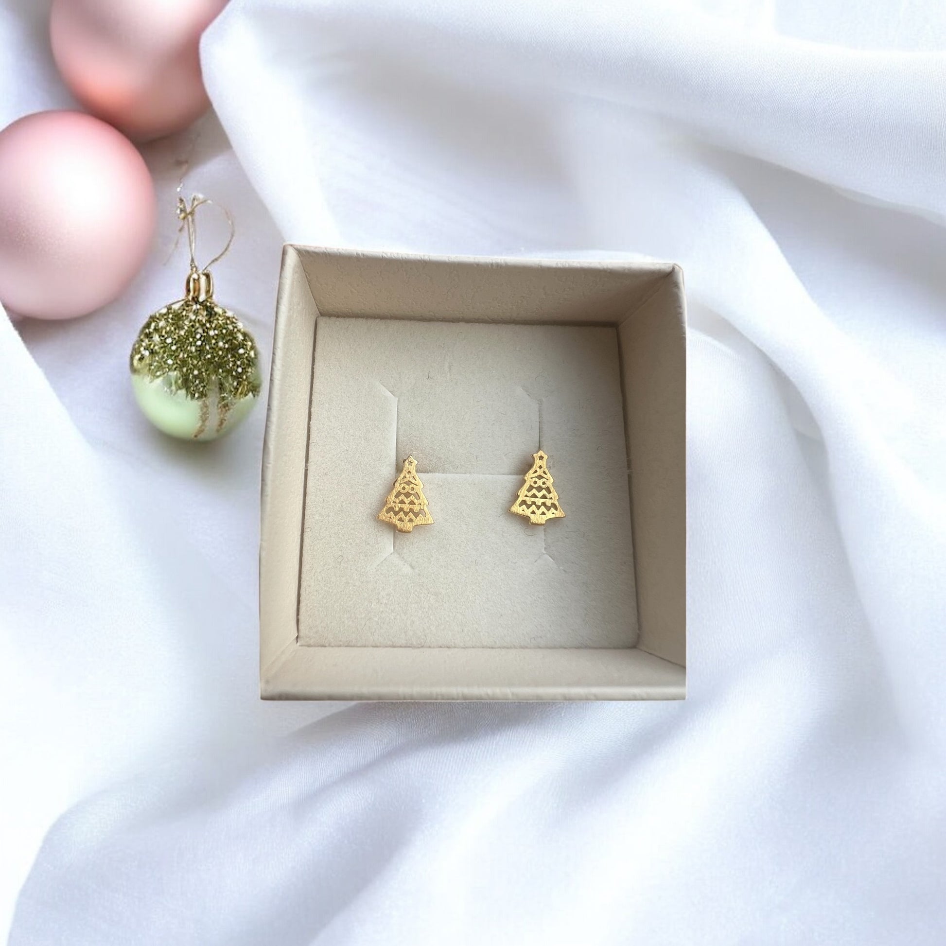 Små, søde juletræs-ørestikker i 18k forgyldt sterling sølv. Perfekt til julens fester.
