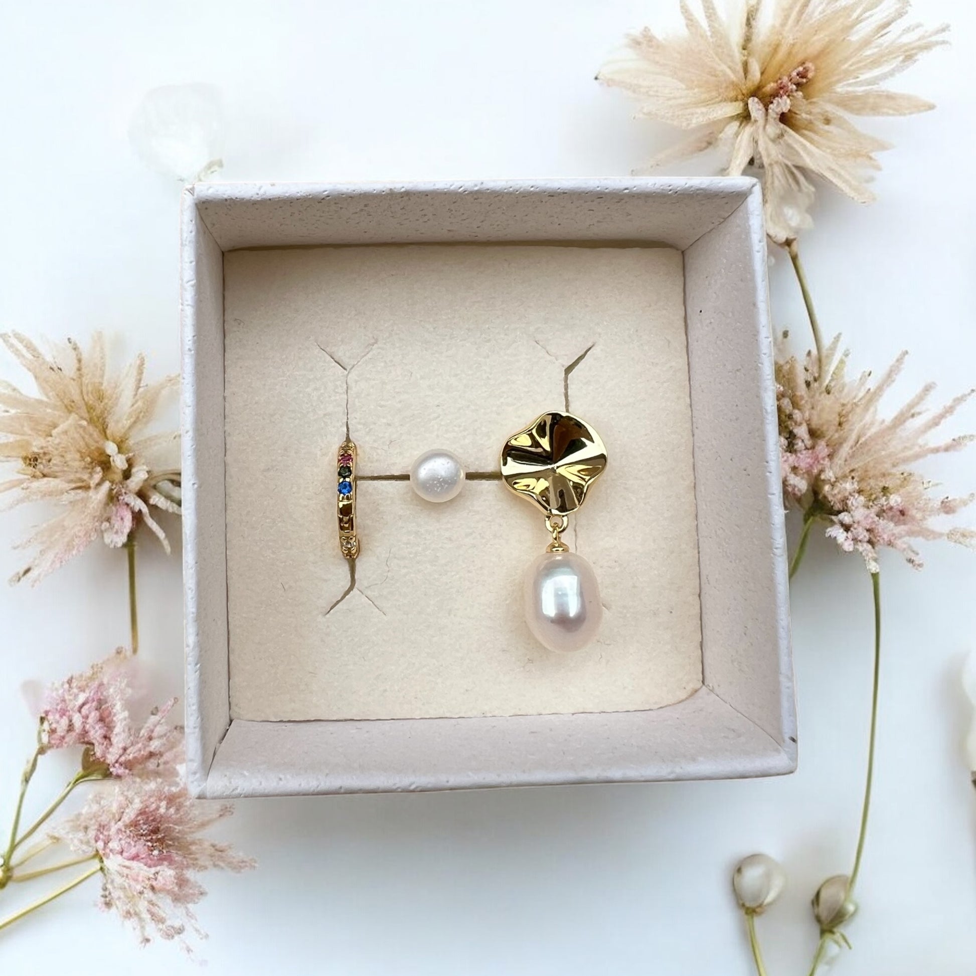 Unikt øreringesæt med 3 forskellige øreringe i 18k forgyldt sterling sølv – skabt til dig, der elsker et legende og asymmetrisk look.