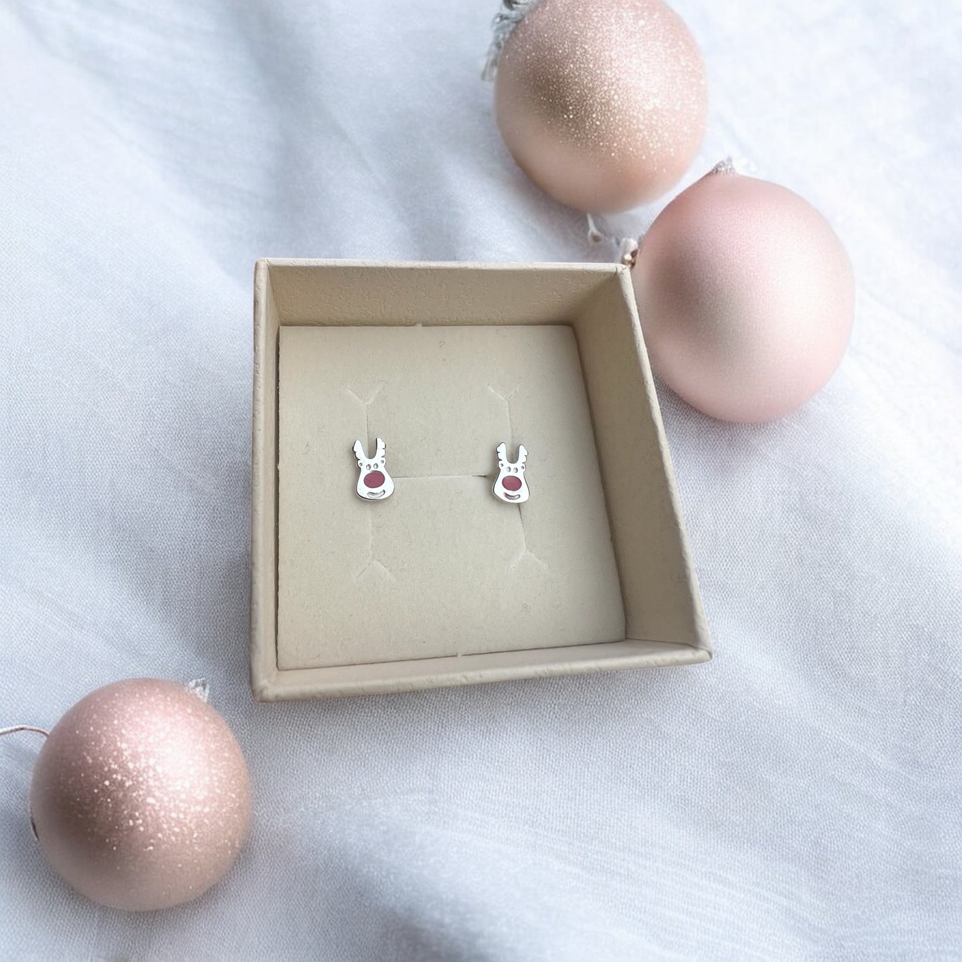 Små søde Rudolf-ørestikker i sterling sølv. Perfekt til julens fester.