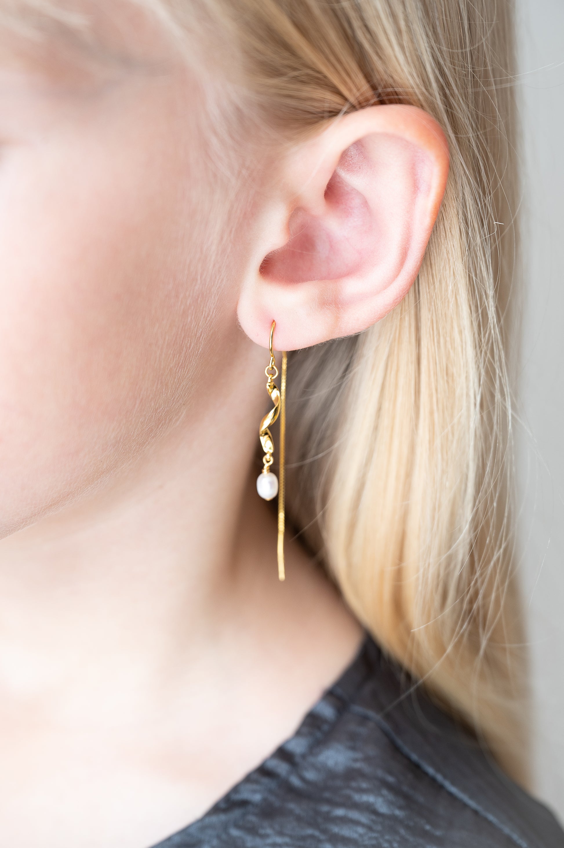 Håndlavede perleøreringe i 18k forgyldt sterling sølv. Skønne til sommerens fester og matches fint med andre perleøreringe.